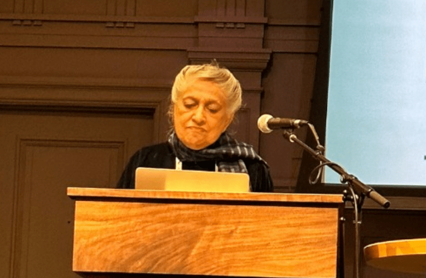 Yasmeen’s lecture was titled “Lessons from the Global South: Community Engagement for Decolonization and Decarbonization of the Built Environment.” The most notable takeaway and a primary focus of her talk was her zero carbon footprint home designs that use the locally sourced materials of bamboo, lime, and mud that have led to what the website says is 40,000 green shelters, but I thought in her presentation said there were far more shelters constructed to date. Her model is simple—teach locals how to build these simple designs that provide all the basic needs for daily living with materials sourced locally to keep them affordable and sustainable. Then those project leads go out into communities and help locals build their own homes.